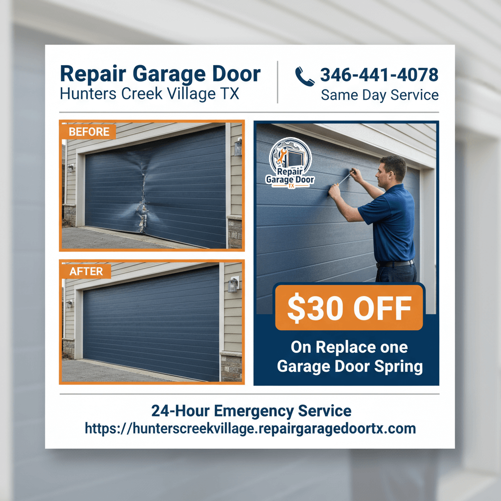 Every successful service call begins with understanding how the entire system works together. Repair Garage Door Hunters Creek Village TX starts each project by carefully inspecting springs, cables, rollers, tracks, hinges and opener response.